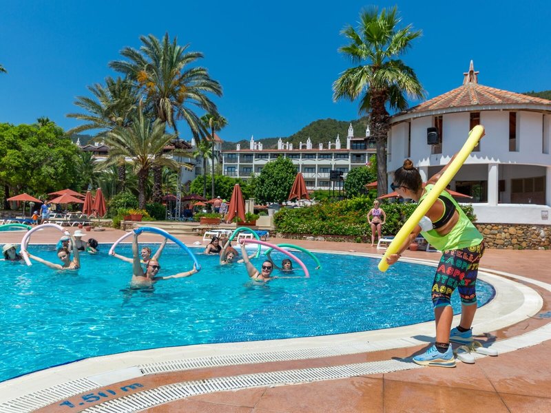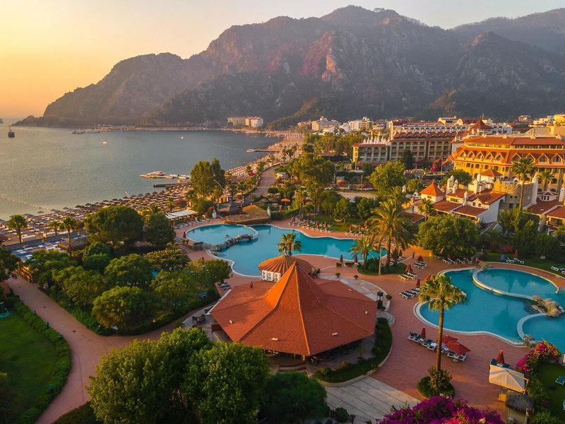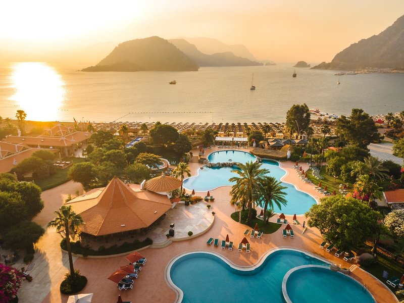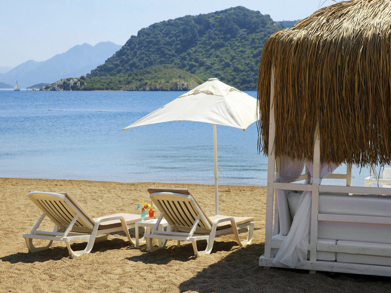 Lage & Umgebung Das luxuriöse Resort, nahe Marmaris, perfekt gelegen an der lykischen Küste, bietet einen direkten Zugang zum hoteleigenen Sand-Kies-Strand. Restaurants und Geschäften befinden sich in der Nähe, das Ortszentrum von Icemeler liegt ca. 400 m entfernt.
