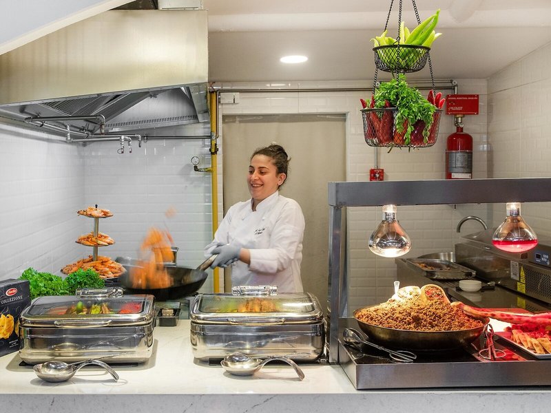 - Fő étterem Étterem: Konyha: Ázsiai, nemzetközi, mediterrán, török, hal/tenger gyümölcsei, bébiételek: díjmentes, kérés és foglalás nem szükséges, bioételek: nincs díj, kérés és foglalás nem szükséges, gyermekbüfé: térítés ellenében, kérésre & foglalás nem szükséges , büfé, látványkonyha, légkondicionált, terasszal, dohányzósarokkal, gyerek etetőszékkel