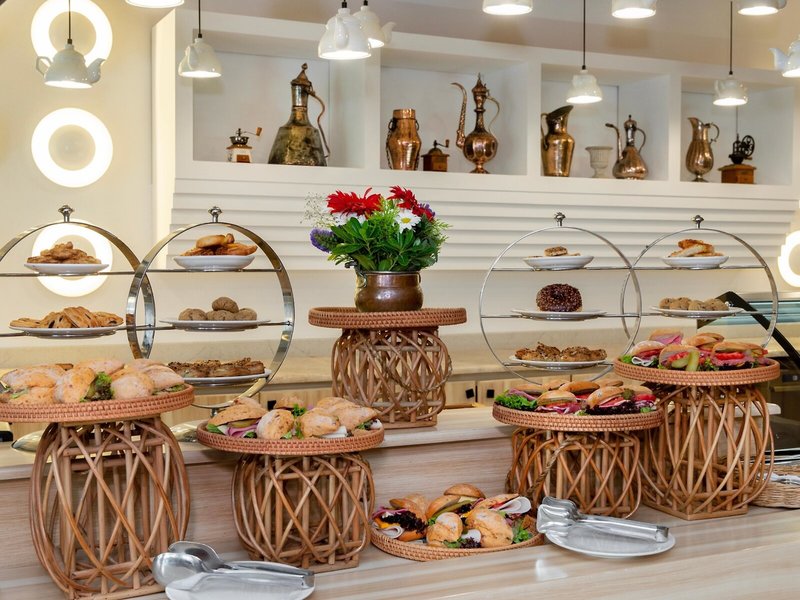 - Hauptrestaurant „The Restaurant“: Küche: asiatisch, international, mediterran, türkisch, Fisch/Meeresfrüchte, Babynahrung: ohne Gebühr, Anfrage & Reservierung nicht notwendig, Biolebensmittel: ohne Gebühr, Anfrage & Reservierung nicht notwendig, Kinderbuffet: ohne Gebühr, Anfrage & Reservierung nicht notwendig, Buffet, Showcooking, klimatisierbar, mit Terrasse, Raucherbereich, Kinderhochstuhl