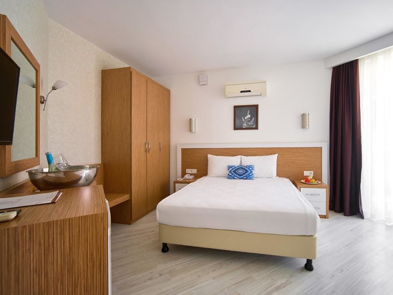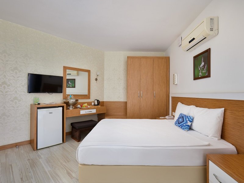 Lage & Umgebung Das Hotel liegt im Herzen der antiken Stadt Side, umgeben von historischen Schätzen. Der feinsandige Strand ist etwa 500 m entfernt. Das Hotel befindet sich auf einem 1.400 m² großen Grundstück.