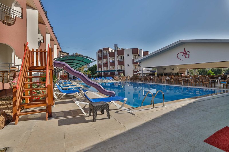 Ausstattung: Das Hotel verfügt über 67 Zimmer verteilt auf zwei Gebäude. Zu den Annehmlichkeiten des Hotels zählen eine Rezeption mit Mietsafes, eine Lobby, Wi-Fi/Internetecke (gegen Gebühr), ein Restaurant, eine Bar und ein TV-Raum. Im Außenbereich befindet sich ein Swimmingpool und eine Poolbar. Liegen, Auflagen und Sonnenschirme erhalten Sie am Pool und am hoteleigenen Strandabschnitt kostenfrei.