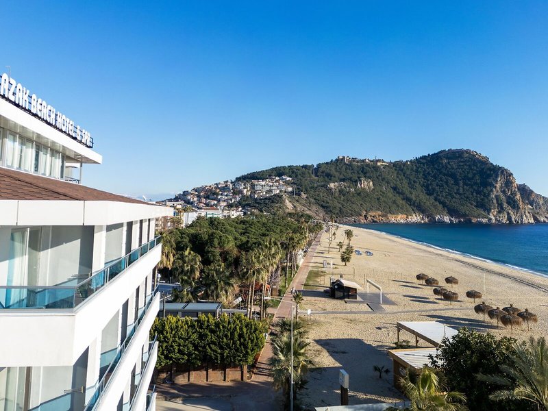 Lage & Umgebung Das Hotel, ideal für Strandurlauber, liegt im Zentrum Alanyas, direkt am Meer. Bis zum nächsten Flughafen, Gazipasa (GZP), sind es ungefähr 40 km, Antalya (AYT) befindet sich in rund 120 km Entfernung.