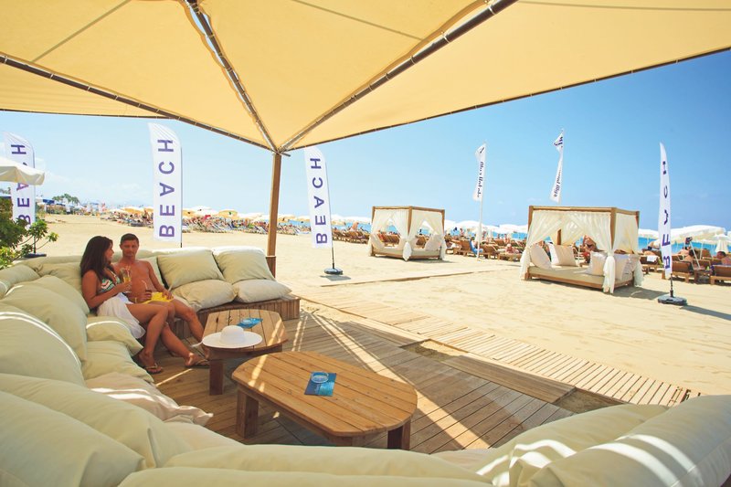 Ausstattung: Das Urlaubsdomizil verfügt über 105 Zimmer, die sich auf sechs Etagen verteilen (Lift vorhanden). Zu den allgemeinen Einrichtungen zählen eine geschmackvoll gestaltete Empfangshalle mit Rezeption, gemütlichen Sitzecken und Lobbybar, das Buffet Restaurant und das Spa Zentrum, ein TV Raum, sowie Geschäfte (gegen Gebühr). Wi-Fi ist in der gesamten Anlage inklusive. Ein Süßwasser Swimmingpool mit Sonnenterrasse und separatem Pool für Kinder und ein weiterer Pool mit zwei Wasserrutschen (wetterbedingt und stundenweise). Die Poolbar befindet sich in der gepflegten Gartenanlage. Liegen, Auflagen und Sonnenschirme sind am Pool und am hoteleigenen Strandabschnitt (Strandbar vorhanden mit kalten und heißen alkoholfreien Getränken) inklusive. Das erste Badetuch ist kostenfrei (gegen Kaution), ein Wechsel ist innerhalb einer Woche gegen Gebühr möglich.