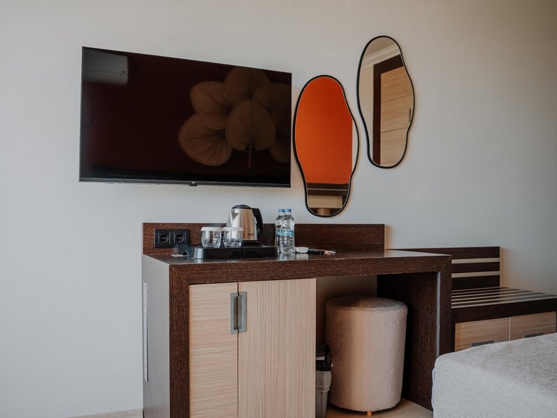 - Double Standard Sea View Room (DZM1), Doppelzimmer, Nichtraucherzimmer, Mindestalter im Zimmer: 0 Jahre, im Hauptgebäude, Neubau, Meerblick, Blick auf sea, ca. 24 m², letzte Komplettrenovierung 2025, Gesamtanzahl der Räume in diesem Zimmertyp: 16, Aufteilung wie folgt: 1 Schlafzimmer, 1 Double Bed, Babybett, Moskitonetz, Klimaanlage: individuell regelbar, kalt, warm, Heizung: individuell regelbar, Fußboden: Fliesenboden, Laminat, Safe, Standventilator, Kaffee-/Teezubereiter, Wasserkocher, Minibar: Wasser, Telefon, Internet: WLAN/WiFi, Fernseher: im Schlafzimmer, Sat-TV, Roomservice, Reinigungsservice, Badewanne oder Dusche, Dusche, WC, Föhn, Balkon: mit Sitzgelegenheit, Balkon oder Terrasse: mit Sitzgelegenheit