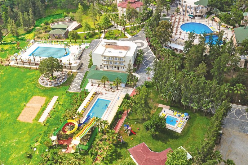 Ausstattung: Das farbenfroh eingerichtete, moderne Hotel verfügt über 297 Zimmer. Der Innenbereich umfasst Lobby, Rezeption, Lobbybar mit Sitzgelegenheiten, Sat.-TV Raum, Diskothek, Showbühne-Amphitheater. Friseur, verschiedene Geschäfte, Kiosk und ein Shop (jeweils gegen Gebühr). Wi-Fi ist im gesamten Hotelbereich inklusive. Zu den weiteren Einrichtungen zählt zudem ein Buffetrestaurant sowie ein À-la carte-Restaurant, welcher ab 15.5. geöffnet sein wird und für Gäste ab 6 Jahren zugänglich ist. In der weitläufigen Gartenanlage befindet sich die Poollandschaft mit zwei Süßwasser-Swimmingpools (ein Relaxpool und großen Swimmingpool), einen kleinen Pool mit zwei Wasserrutschen (stundenweise), separater Kinderbecken und eine Snack-/Poolbar. Am Strand mit Beach-/Snackbar und am Pool stehen Sonnenliegen, Auflagen und Sonnenschirme kostenlos zur Verfügung, Badetücher sind gegen Gebühr erhältlich.