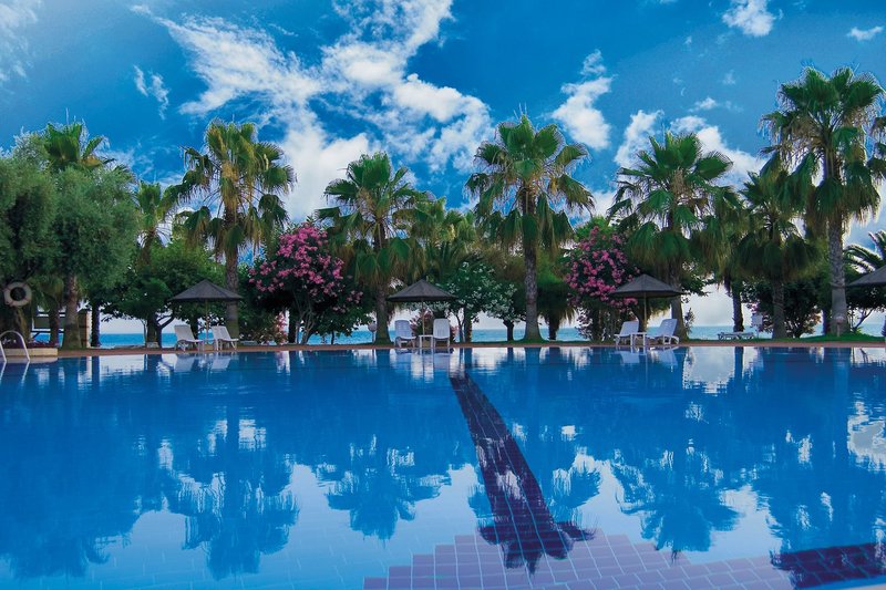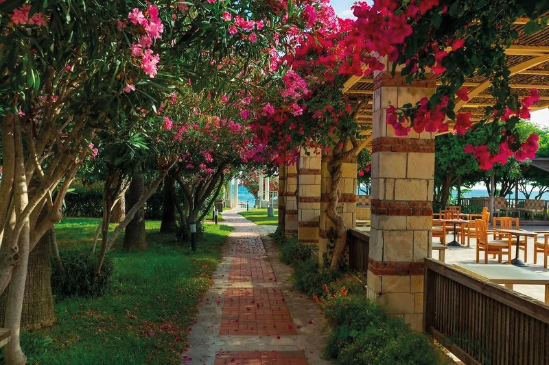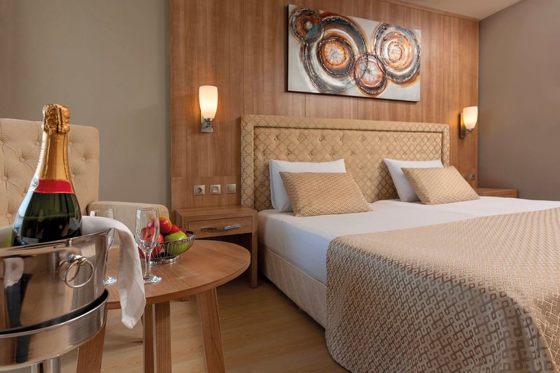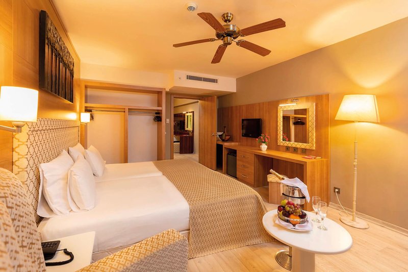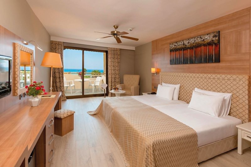 jól ismert Defne szállodacsoport kényelmes szállodája mintegy 45.000 m²-en terül el, hatalmas kertek közepén, és összesen 317 kétágyas szobával, 28 csillagos deluxe szobával, 14 családi szobával, 55 deluxe családi szobával és két mozgássérültek számára kialakított szobával rendelkezik. szobák (kérésre), amelyek több három között vannak elosztva - Akár négyemeletes épületek (lifttel) elosztása. Nyaralójának kényelmi szolgáltatásai közé tartozik a recepciós hall recepcióval, a lobby és a hangulatos pihenősarok, a svédasztalos étterem nemzetközi konyhával és egy gyönyörű terasz (nemdohányzó résszel, ha az időjárás engedi). A snack- és à la carte étteremben (nemzetközi konyha) 12 és 16 óra között lehet ebédelni (térítés ellenében). Bárok, képernyős műholdas TV-szoba és wellness-központ is rendelkezésre áll. A szobákban, a hallban, a kertben, a strandon, a bárban és a medence területén Wi-Fi biztosított. A gondozott kertben napozóteraszok, valamint egy 2200 m²-es medence medencebárral és egy medence négy vízi csúszdával, valamint egy külön gyerekmedence csúszdával (mindegyik óránkénti bontásban/ha az időjárás engedi). A napernyők, nyugágyak, párnák és strandtörölközők (a szobában) a napozóteraszon, a strandon (strand/snack bárral) és a medence területén biztosítottak. A csendes elhelyezkedésű fedett úszómedence a szezon elején és késői időszakban áll rendelkezésre, ha az időjárás engedi, és az időjárástól függően fűtött.