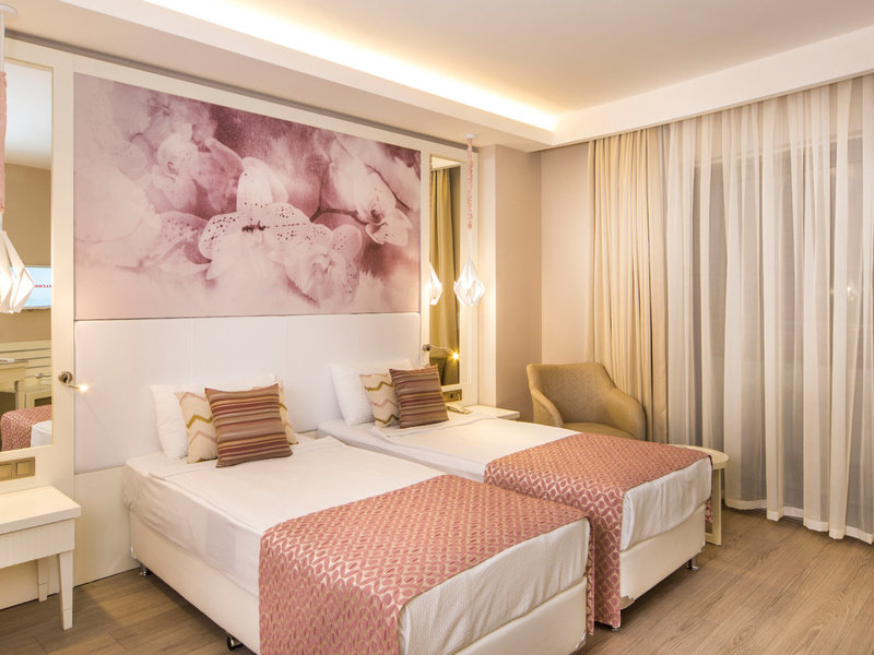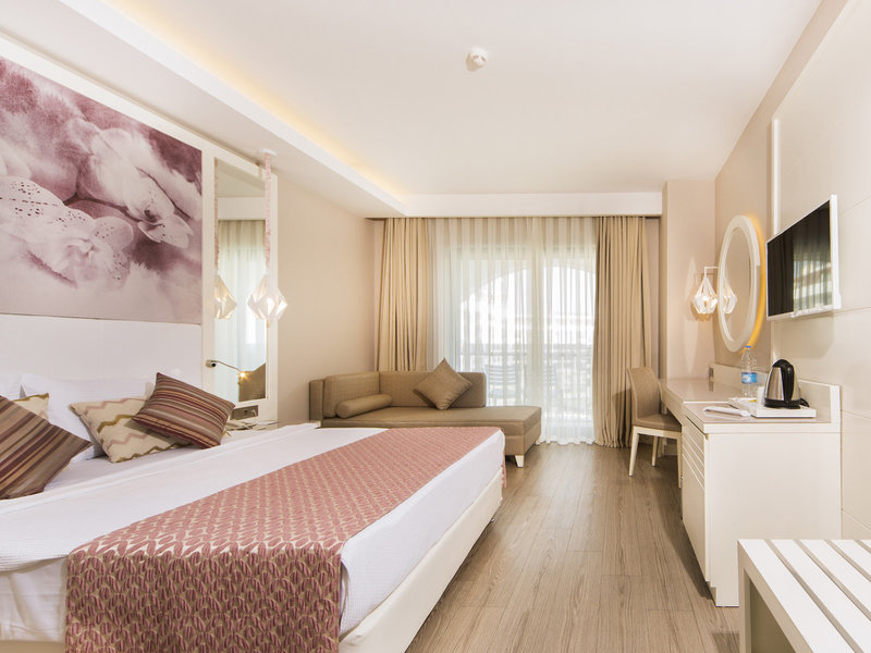 - Kétágyas szoba Standard Sea View (DZM1), kétágyas szoba, főépületben, tenger felőli, tengerre néző, kb 28 m², összesen szobaszám ebben a szobatípusban: 1, légkondicionálás: ingyenes, szezonális, központilag szabályozható, padló: laminált, széf: ingyenes, Íróasztal, kávé/teafőző, vízforraló, minibár: ingyenes, üdítők: ingyenes, víz: ingyenes, telefon, Internet: WLAN/WiFi: ingyenes, TV: síkképernyős, német csatornák, műholdas TV, szobaszerviz: térítés ellenében , takarítás: ingyenes, zuhanyzó, WC, hajszárító, kozmetikai tükör, erkély: ülőgarnitúrával, erkély vagy terasz: ülőhellyel