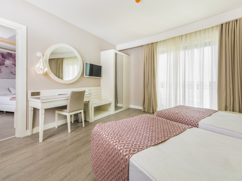 - Family Room 2 Bathrooms (FZX2), Familienzimmer, ca. 56 m², Gesamtanzahl der Räume in diesem Zimmertyp: 2, Aufteilung wie folgt: bestehend aus 2 Doppelzimmern mit Verbindungstür, Klimaanlage: ohne Gebühr, saisonabhängig, zentral gesteuert, Fußboden: Laminat, Safe: ohne Gebühr, Kaffee-/Teezubereiter, Wasserkocher, Minibar: ohne Gebühr, Minibarauffüllung: täglich, Telefon, Internet: WLAN/WiFi: ohne Gebühr, Fernseher: Flatscreen, deutsches Programm, Sat-TV, Roomservice: gegen Gebühr, Reinigungsservice: ohne Gebühr, Dusche, WC, 2 Bäder, Föhn, Kosmetikspiegel, Balkon oder Terrasse: mit Sitzgelegenheit