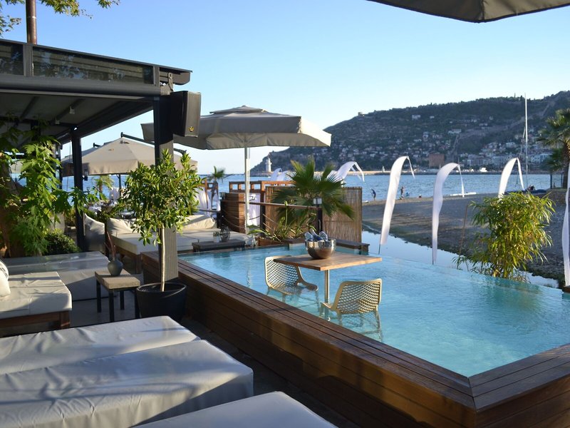 Lage & Umgebung Dieses Boutique-Hotel liegt direkt am Strand, in zentraler Lage in Alanya.