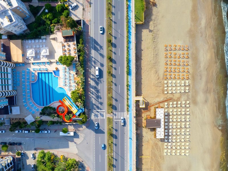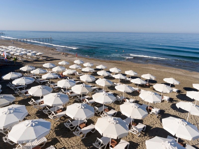 Lage & Umgebung Das Hotel befindet sich an der Küste, rund 10 km östlich von Alanya in Mahmutlar entfernt. Nach einem kurzen Spaziergang erreichen die Gäste Bars und Restaurants, Geschäfte liegen ca. 1 km entfernt. Öffentliche Verkehrsmittel verkehren regelmäßig nach Alanya, wo es Diskotheken und einen Busbahnhof gibt. Zu den nahe gelegenen interessanten Orten zählen die Damlataş Höhlen, der Rote Turm und der Hafen (alle rund 10 km entfernt) sowie das Schloss Alanya (ca. 12 km entfernt). Das Hotel liegt ungefähr 130 km vom Flughafen Antalya entfernt.
