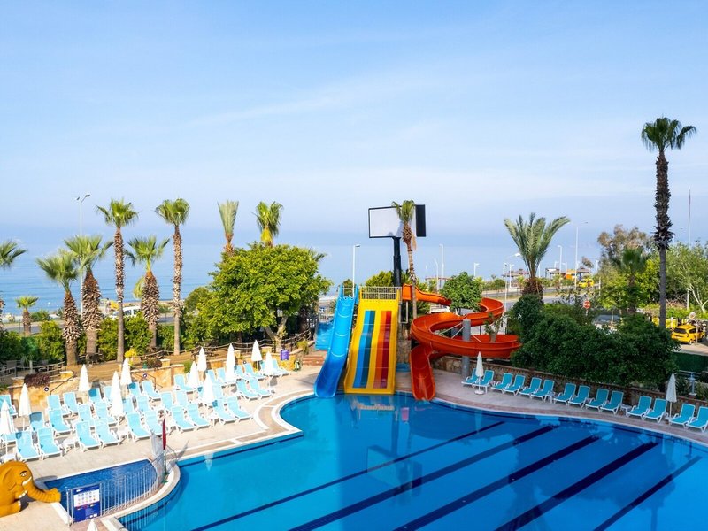 Fekvése és környéke A szálloda a tengerparton található, mintegy 10 km-re Alanyától keletre, Mahmutlarban. A bárok és éttermek rövid sétával elérhetők, üzletek pedig körülbelül 1 km-re találhatók. A tömegközlekedés rendszeresen közlekedik Alanyába, ahol éjszakai klubok és buszpályaudvar található. A közeli látnivalók közé tartozik a Damlataş-barlang, a Vörös-torony és a kikötő (mindegyik körülbelül 10 km-re van) és az alanyai vár (körülbelül 12 km-re). A szálloda körülbelül 130 km-re található Antalya repülőterétől.