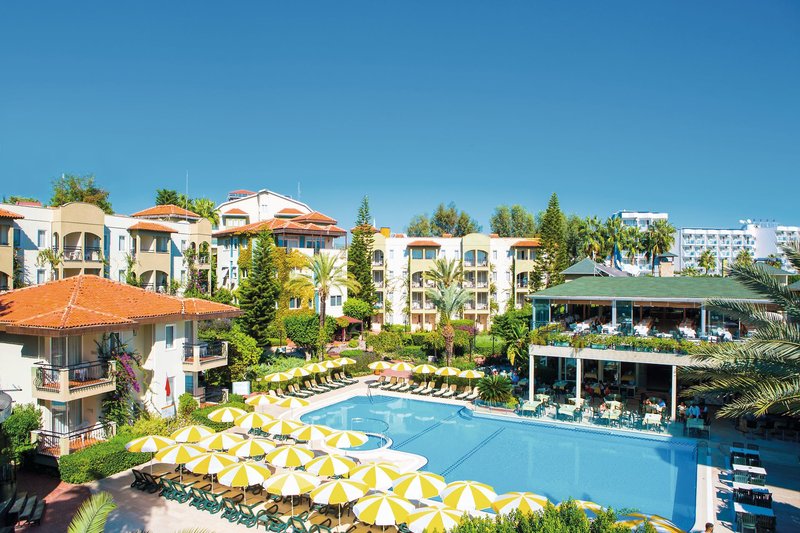 Felszereltség: Ez a hangulatos üdülőszálloda egy háromszintes főépületből és több három-ötszintes melléképületből áll, összesen 273 szobával. A főépületben található egy előcsarnok recepcióval és ülősarokkal, valamint egy társalgó TV-sarokkal. A Wi-Fi benne van az árban. A szálloda büfééttermet is kínál kültéri terasszal. A jól karbantartott, tágas kertben három édesvizű medence található külön gyermekmedencékkel, két medencebár, egy vízicsúszda (óránként nyitva), egy napozóterasz, egy napozópázsit és egy szórakoztató színpad az esti műsorokhoz. A strandon egy részben fedett terasszal rendelkező strandbár található. Itt, valamint a medencéknél is, nyugágyak, párnák és napernyők állnak vendégeink rendelkezésére. A strandtörölközőket ingyenesen biztosítjuk kaució ellenében. A szállodában számos lépcső, de számos rámpa is található.