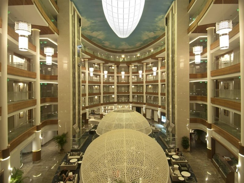 Sport & Fitness: Ein Außenpool (kostenlos) und ein Hallenbad laden zum entspannten Badevergnügen ein. Kinder können sich in einem Planschbecken austoben. Im Badebereich gibt es zudem einen Whirlpool, eine Wasserrutsche und eine Poolbar. Eine Sonnenterrasse, Liegestühle und Schirme sind vorhanden. Das Hotel bietet ein umfangreiches Outdoor-Sportprogramm mit Radfahren/Mountainbiking, Beachvolleyball, Basketball und Golfen. Mit Kanufahren und gegen Gebühr Wasserskifahren, Jetskifahren, Motorbootfahren und Bananenbootfahren kommen auch Wassersportfreunde auf ihre Kosten. Den Gästen steht im Komplex mit einem Fitnessstudio, Tischtennis, Billard, Darts, Yoga und Aerobic ein breites Spektrum an Indoor-Sportarten zur Auswahl. Die Unterbringung verfügt über einen Wellnessbereich mit einem Spa, einer Sauna, einem Dampfbad, einem Hammam und einem Solarium. Kostenpflichtig: Massage-Anwendungen. Ein Miniclub und eine Disco sind Möglichkeiten der Freizeitgestaltung.