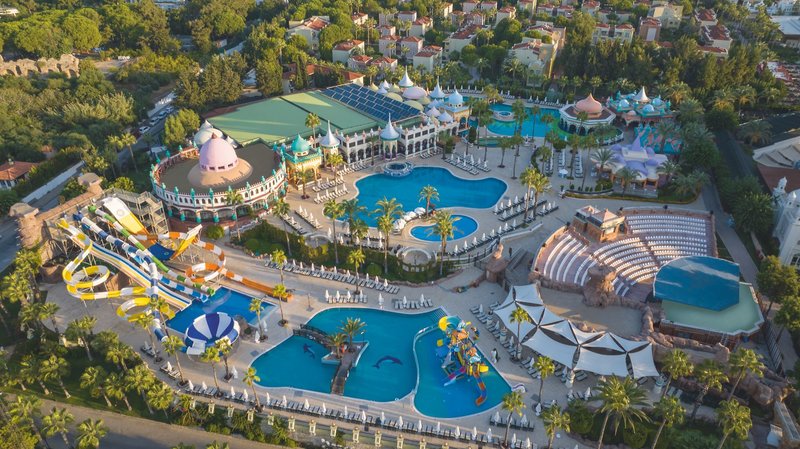 Ausstattung: Das Hotel Kamelya Fulya bietet 244 Zimmer die auf sieben Etagen und mehrere Beach Häuser verteilt sind. Zur zentralen Ausstattung gehören ein offener Empfangsbereich mit Rezeption, verschiedene Bars, das Hauptrestaurant, diverse À-la-carte-Restaurants (mit Reservierung und gegen Gebühr; einmal bei mindestens 7 Nächte Aufenthalt ist das nach Reservierung und Verfügbarkeit inklusive) sowie ein Amphitheater. Zwei Hallenbäder mit separatem Kinderbecken (saisonbedingt in Benutzung), ein Friseur und diverse Geschäfte sind gegen Gebühr. Wi-Fi ist im gesamten Komplex inklusive. In der schön begrünten Gartenanlage befinden sich fünf Süßwasser-Swimmingpools für Erwachsene und drei separaten Kinderbecken, Sonnenterrasse und Poolbar und ein mit sehr viel Liebe zum Detail angelegter Aquarius Aquapark mit 14 Wasserrutschen (vom 1.4.-30.10. wetterbedingt geöffnet). Zwischen den Hotels "Fulya" und "Selin" befindet sich ein Ruhepool für Erholungssuchende. Am Strand und an den Pools stehen Liegen, Auflagen, Sonnenschirme und Badetücher (Ausgabe am Pool) kostenfrei zur Verfügung.