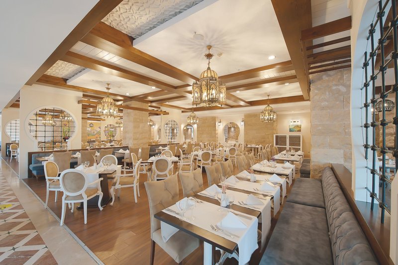 Ultra All Incluisve: Frühstück, Mittag- und Abendessen vom Buffet, Spätaufsteherfrühstück, nachmittags Kaffee und Tee sowie Gebäck, Eis beim Mittag- und Abendessen, tagsüber Snacks, türkisches Fladenbrot am Pool und am Strand sowie Grillgerichte und "Günay" Restaurant welches 24 Stunden geöffnet ist (im Hotel Fulya). Diverse lokale alkoholische und alkoholfreie sowie einige Importgetränke an verschiedenen Bars sowie Tischwein zum Mittag- und Abendessen. Eine Bar im Kamelya Collection-Komplex ist bis 05 Uhr geöffnet. Die Minibar wird täglich mit Softdrinks und Bier aufgefüllt. Das Tragen eines All Inclusive-Armbandes ist obligatorisch.