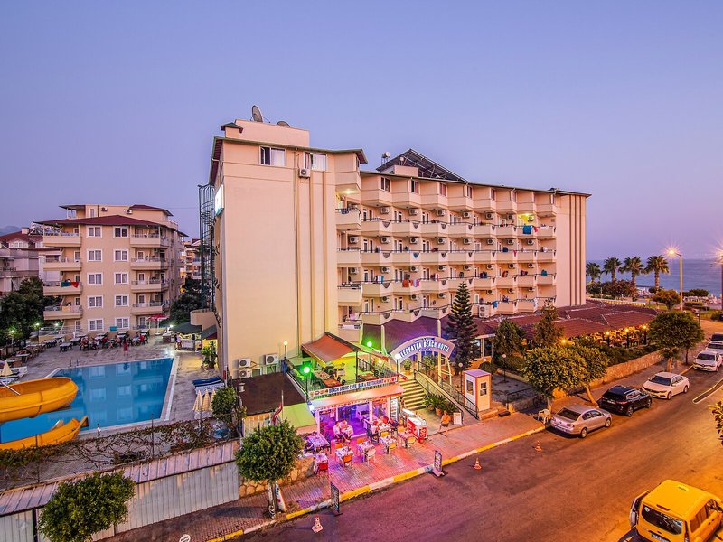 Lage & Umgebung Das Hotel, bestens geeignet für Strandurlauber und Familien, liegt in Alanya, nur 30 m vom Sandstrand entfernt, an einer Hauptstraße, das Zentrum Alanyas mit seinen touristischen Highlights erreicht man nach rund 1 km. Nur wenige Minuten von der Unterkunft liegen diverse Geschäfte, außerdem besteht Anbindung an die öffentlichen Verkehrsmittel.