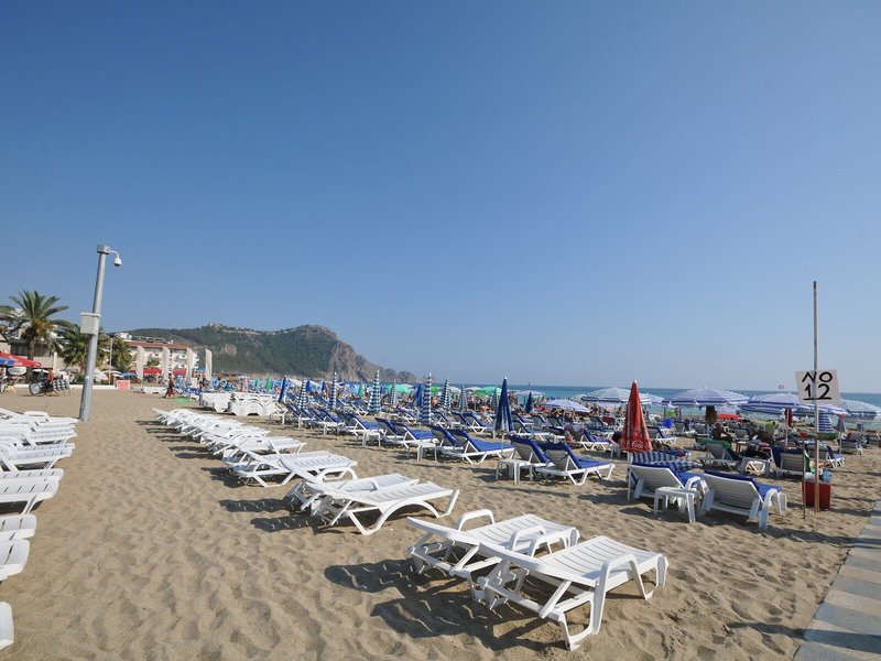 Lage & Umgebung Das Hotel befindet sich rund 150 m vom Strand entfernt im Zentrum des Badeorts und bietet damit direkten Zugang zu verschiedenen Geschäften, Bars und Restaurants. Der Flughafen Antalya ist ungefähr 135 km vom Hotel entfernt.
