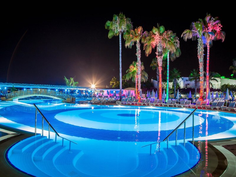 Sport & Fitness: Der großzügige Poolbereich mit 7 Outdoorpools verspricht Erfrischung und Erholung. An kühlen Tagen kann das Hallenbad genutzt werden. Die Kinder können sich in einem der 7 Planschbecken austoben. Pure Tiefenentspannung im Whirlpool, Vergnügen auf der Wasserrutsche und erfrischende Getränke an der Poolbar – die Gäste werden erleben, wie abwechslungsreich der Wasserspaß sein kann. Das Hotel bietet ein umfangreiches Outdoor-Sportprogramm mit Tennis, Boccia, Beachvolleyball, Volleyball und Basketball. Zum Wassersportangebot gehören Wasseraerobic sowie gegen eine Gebühr Tauchen. Die Unterbringung bietet eine Vielzahl an Möglichkeiten zur sportlichen Aktivität im Indoor-Bereich, wie etwa ein Fitnessstudio, Tischtennis, Darts und Aerobic sowie gebührenpflichtig Billard. Im Haus werden verschiedene Wellnessangebote wie eine Sauna, ein Dampfbad, ein Hammam und Hydrotherapie-Anwendungen offeriert. Gegen Gebühr können die Gäste zudem einen Schönheitssalon und Massage-Anwendungen in Anspruch nehmen. Ein Miniclub, eine Minidisco und eine Disco sorgen für besten Freizeitspaß.