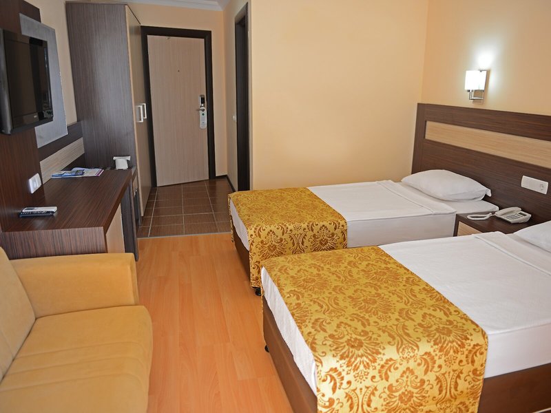 Elhelyezkedés és környezet: Közvetlenül a Fugla-öböl tengerpartján, saját finom homokos stranddal. A bevásárlóközpont körülbelül 5 percre található, és taxival vagy busszal könnyen megközelíthető.
