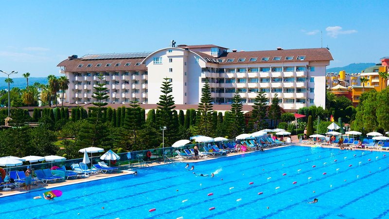 Felszereltség: Ez a kényelmes üdülőhely, amely nemzetközi vendégkört vonz, összesen 872 szobával rendelkezik hat, egyenként három-öt emeletes épületben (négy épületben liftek állnak rendelkezésre). A különféle szolgáltatások közé tartozik két büféétterem, egy à la carte étterem (díj ellenében, a szabad helyek függvényében/előzetes foglalás esetén, május 15-től október 15-ig tart nyitva), két fedett medence pezsgőfürdővel (téli szezonban nyitva), olvasóterem és műholdas TV-szoba. Különböző üzletek, fodrászat és játékterem díj ellenében vehető igénybe. A Wi-Fi ingyenes a szálloda épületeiben és a komplexum számos helyén, valamint a szobákban. A gyönyörűen karbantartott kertben öt nagy édesvizű medence napozóteraszokkal, öt gyermekmedence és medence melletti snack bárok, valamint a Lonicera Aquapark (április 15-től október 15-ig óránként nyitva tart) 19 csúszdával található. A napozóágyak, strandtörölközők és napernyők a medencénél és a strandon is benne vannak az árban.