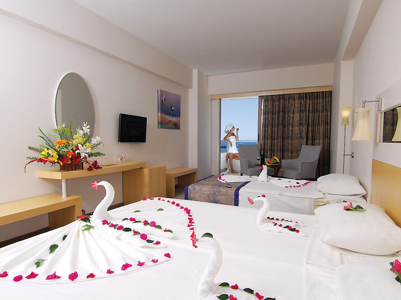 Sport & Fitness: Ein Sprung in den erfrischenden Innen- oder Außenpool sorgt für Abkühlung an heißen Tagen. Ein separater Kinderpool ist ebenfalls vorhanden. Wasserrutschen sorgen für Badespaß bei Jung und Alt. Auch eine Sonnenterrasse, Sonnenliegen und Sonnenschirme sind vorhanden. Zu den Freizeitangeboten gehören ein Fitnessraum, Tennis (Flutlicht gegen Gebühr), Tischtennis, Dart, Boccia, Beachvolleyball und Gymnastik. Im Haus werden verschiedene Wellnessangebote wie Sauna, Whirlpool, türkisches Bad und Massageanwendungen (gegen Gebühr) offeriert. Ein Animationsprogramm mit Sportprogramm sowie Abendshows, eine Disco (Getränke exklusive) und ein Miniclub sorgen für besten Freizeitspaß. Am Strand werden zudem Wassersportmöglichkeiten (Fremdanbieter, gegen Gebühr) angeboten.