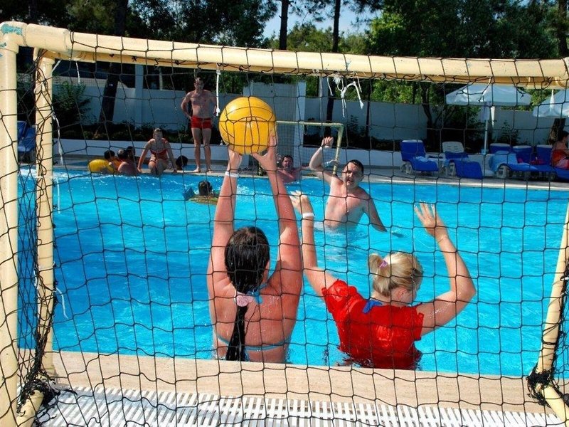 Sport & Fitness: A tágas medencerészleg 2 kültéri medencével felüdülést és kikapcsolódást ígér. A fedett úszómedence hűvös napokon használható. A gyerekek a 2 pancsoló egyikében ereszthetik ki a gőzt. Ezen kívül a medence/snack bár frissítő italai és a vízi csúszda minden víz szerelmesét a legjobb hangulatba hozza. Napozóterasz, nyugágyak és napernyők állnak rendelkezésre. A ház szabadtéri sportolási lehetőségeket kínál kerékpározás/hegyi kerékpározás, tenisz, boccia, strandröplabda, röplabda és minigolf lehetőséggel. A szálláshely vízi sportprogramjai között szerepel a jet-ski, motorcsónakázás, vitorlázás és búvárkodás. A szálloda számos beltéri tevékenységet is kínál a sportok szerelmeseinek, például edzőtermet, asztaliteniszezést, dartsot, gimnasztikát és aerobikot. A házban található egy wellness részleg gyógyfürdővel, szaunával, gőzfürdővel, törökfürdővel és szépségszalonnal. Fizetős: masszázskezelések. Animációs program, gyerekklub, diszkó és éjszakai szórakozóhely biztosítja a legjobb szabadidős szórakozást.