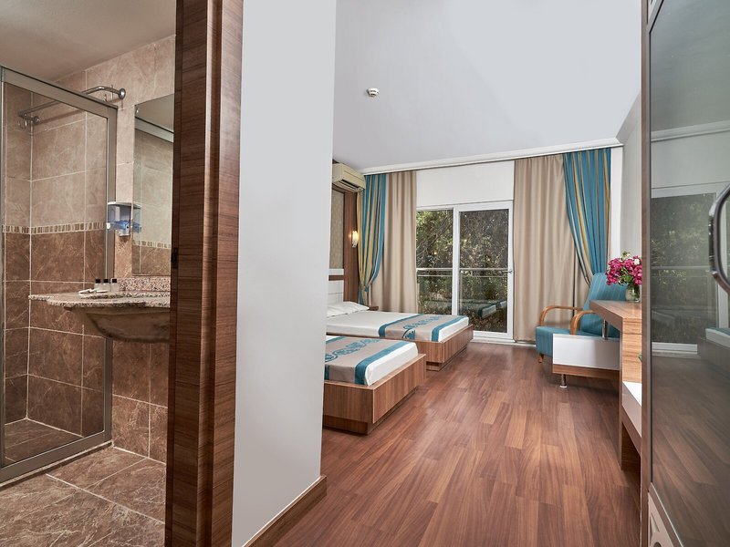 Elhelyezkedés és környezet Ez a modern szálloda körülbelül 450 m-re található a strandtól. Antalya repülőtere kb. 65 km után érhető el.