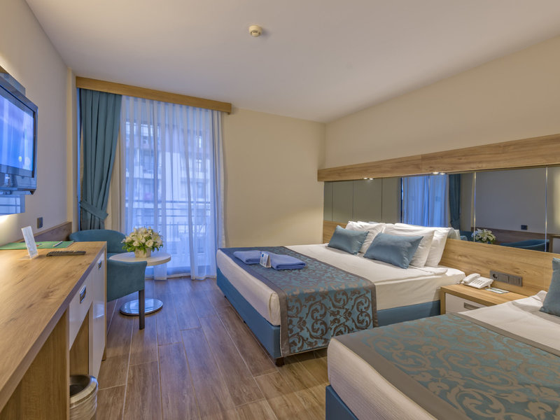 - Promotion Double Standard Side Sea View Room (DZZ1), Doppelzimmer, Nichtraucherzimmer, im Hauptgebäude, eingeschränkter Meerblick, ca. 20 - 24 m², letzte Komplettrenovierung 2020, letzte Teilrenovierung 2023, Gesamtanzahl der Räume in diesem Zimmertyp: 1, Aufteilung wie folgt: 1 Schlafzimmer, 1 Einzelbett (90x200cm), 1 Doppelbett (160x200cm), Babybett: ohne Gebühr, Klimaanlage: ohne Gebühr, saisonabhängig; wetterabhängig, zentral gesteuert, Heizung: saisonabhängig; wetterabhängig, zentral gesteuert, Fußboden: Fliesenboden, Safe: ohne Gebühr, bei All Inclusive inklusive, Kaffee-/Teezubereiter, Wasserkocher, Minibar: ohne Gebühr, Softdrinks: ohne Gebühr, Wasser: ohne Gebühr, alkoholische Getränke: ohne Gebühr, Minibarauffüllung: täglich 08:00 Uhr - 16:00 Uhr, Telefon, Internet: WLAN/WiFi: ohne Gebühr, ca. 0 EUR, bei All Inclusive inklusive, Fernseher: Flatscreen, deutsches Programm, Sat-TV, Roomservice: täglich, gegen Gebühr, Reinigungsservice: täglich, ohne Gebühr, Dusche, WC, Bademantel, Slipper: ohne Gebühr, Föhn, Kosmetikspiegel, Balkon: mit Sitzgelegenheit