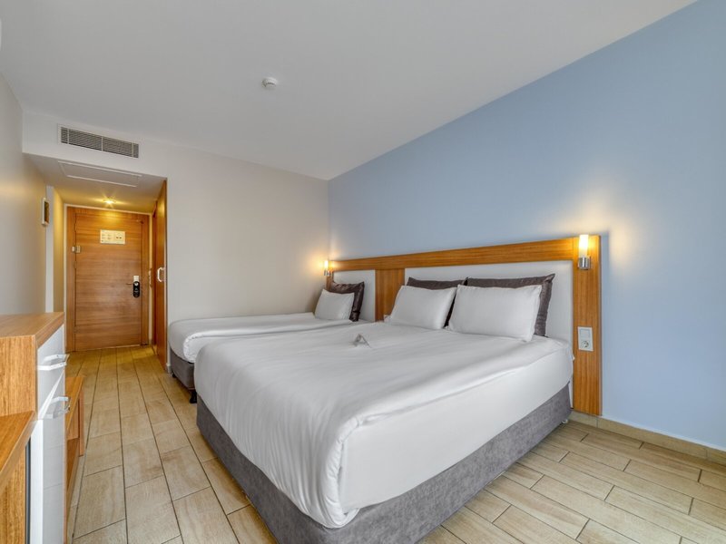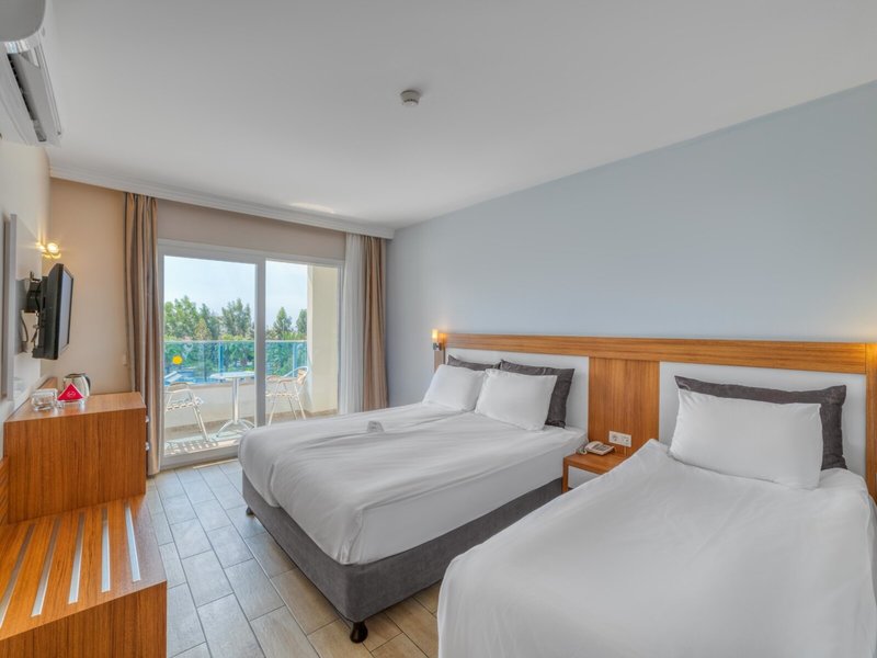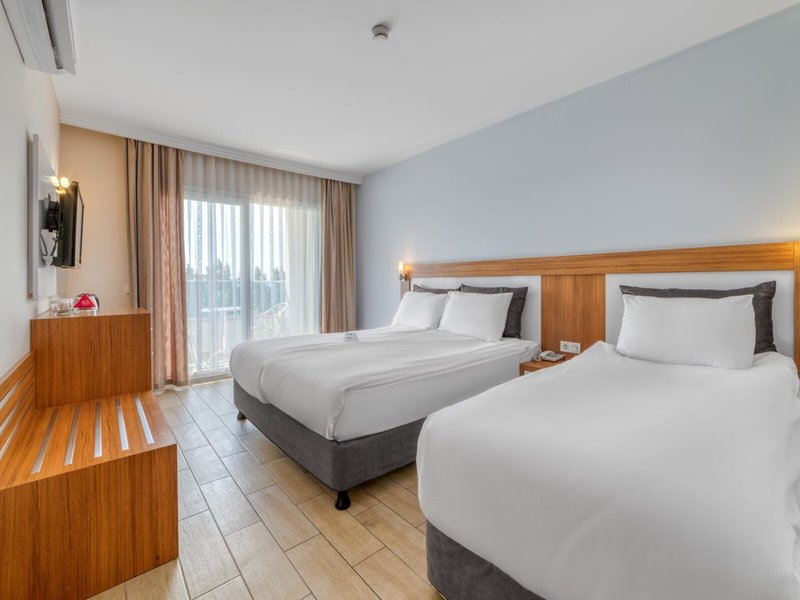 - Standart Room Pool View (DZX2), Doppelzimmer, Nichtraucherzimmer, Poolblick, ca. 26 m², letzte Komplettrenovierung 2019, Gesamtanzahl der Räume in diesem Zimmertyp: 1, Aufteilung wie folgt: 1 Schlafzimmer, 1 Einzelbett, 1 Double Bed, Babybett: ohne Gebühr, Anfrage notwendig, Reservierung nicht notwendig, Klimaanlage: ohne Gebühr, saisonabhängig, individuell regelbar, kalt, warm, Fußboden: Fliesenboden, Safe: gegen Gebühr, Minibar: ohne Gebühr, Wasser: ohne Gebühr, Minibarauffüllung: täglich, Telefon, Internet: WLAN/WiFi: ohne Gebühr, Fernseher: im Schlafzimmer, deutsches Programm, Sat-TV, Reinigungsservice: täglich, ohne Gebühr, Dusche, WC, Slipper: ohne Gebühr, Föhn, Kosmetikspiegel, Balkon: mit Sitzgelegenheit