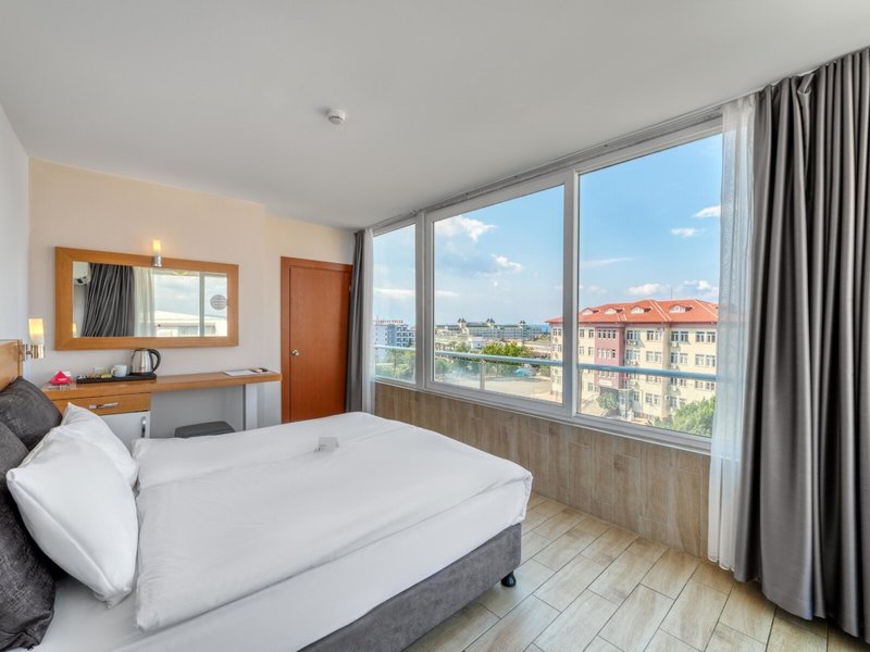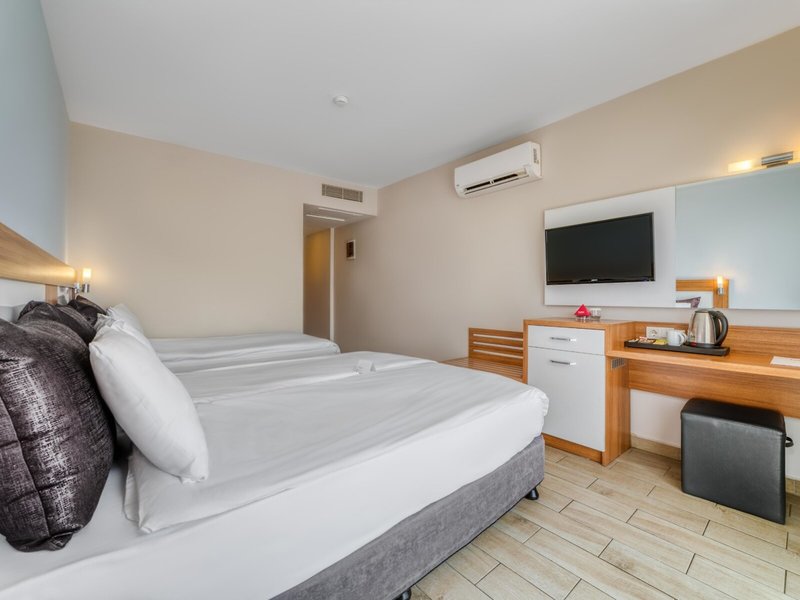 Lage & Umgebung Das Hotel liegt im lebhaften Konakli; zum Ortszentrum sind es ca. 800 m. Der feine Sand-/Kiesstrand befindet sich in etwa 500 m Reichweite. Alanyas Altstadt erreicht man nach rund 12 km, Gazipaşa Airport nach ungefähr 65 km und Antalya Airport nach ca. 110 km.