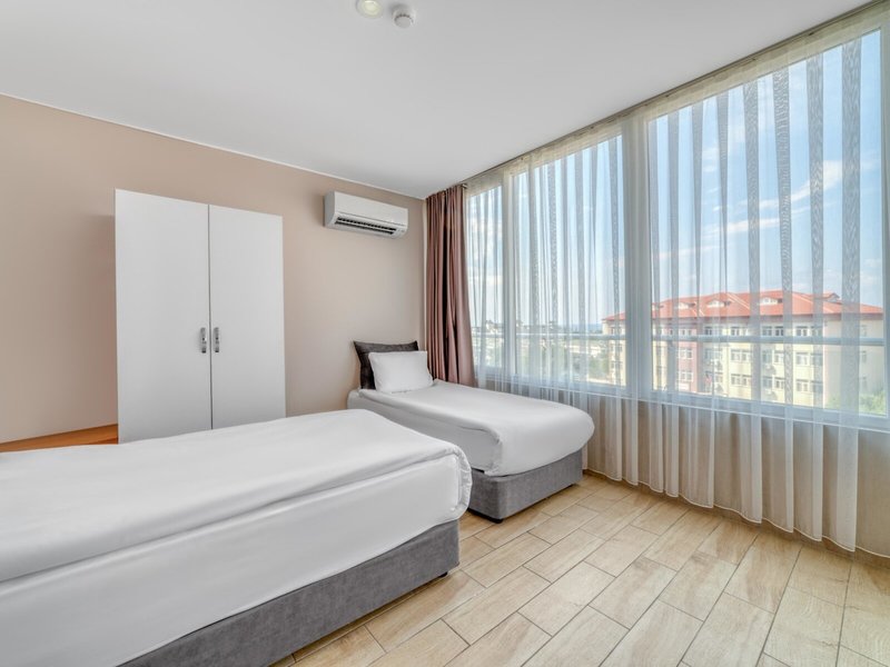 - Akciós Standard kétágyas szoba (DZZ1), kétágyas szoba, nemdohányzó, kilátással a szárazföldre, kb. 26 m², utolsó teljes felújítás 2019-ben, a szobatípusban található szobák száma: 1, elrendezés: 1 hálószoba, 1 egyszemélyes ágy, 1 franciaágy, babaágy: ingyenes, kérésre, foglalás nem szükséges, légkondicionáló: ingyenes, szezonális, egyénileg szabályozható, hideg, meleg, padló: járólap, széf: felár ellenében, minibár: ingyenes, víz: ingyenes, minibár feltöltés: naponta, telefon, internet: WLAN/WiFi: ingyenes, televízió: a hálószobában, német csatornák, műholdas TV, takarítás: naponta, ingyenes, zuhanyzó, WC, papucs: ingyenes, hajszárító, kozmetikai tükör, erkély: ülőgarnitúrával