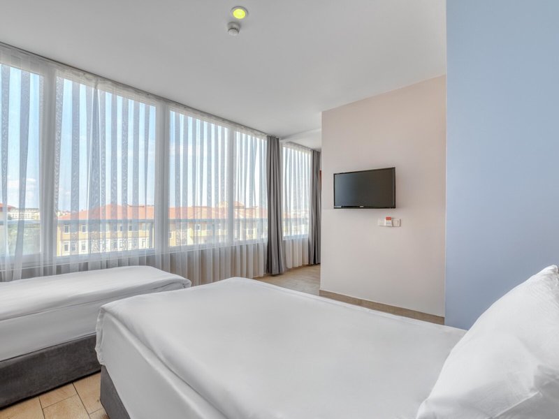 - Standart Room Double (DZX1), Doppelzimmer, Nichtraucherzimmer, Landblick, ca. 26 m², letzte Komplettrenovierung 2019, Gesamtanzahl der Räume in diesem Zimmertyp: 1, Aufteilung wie folgt: 1 Schlafzimmer, 1 Einzelbett, 1 Double Bed, Babybett: ohne Gebühr, Anfrage notwendig, Reservierung nicht notwendig, Klimaanlage: ohne Gebühr, saisonabhängig, individuell regelbar, kalt, warm, Fußboden: Fliesenboden, Safe: gegen Gebühr, Minibar: ohne Gebühr, Wasser: ohne Gebühr, Minibarauffüllung: täglich, Telefon, Internet: WLAN/WiFi: ohne Gebühr, Fernseher: im Schlafzimmer, deutsches Programm, Sat-TV, Reinigungsservice: täglich, ohne Gebühr, Dusche, WC, Slipper: ohne Gebühr, Föhn, Kosmetikspiegel, Balkon: mit Sitzgelegenheit