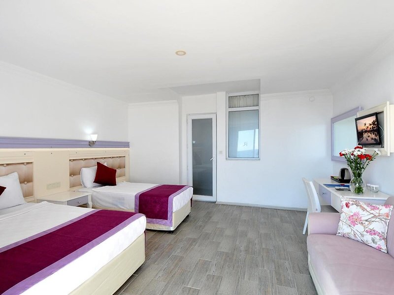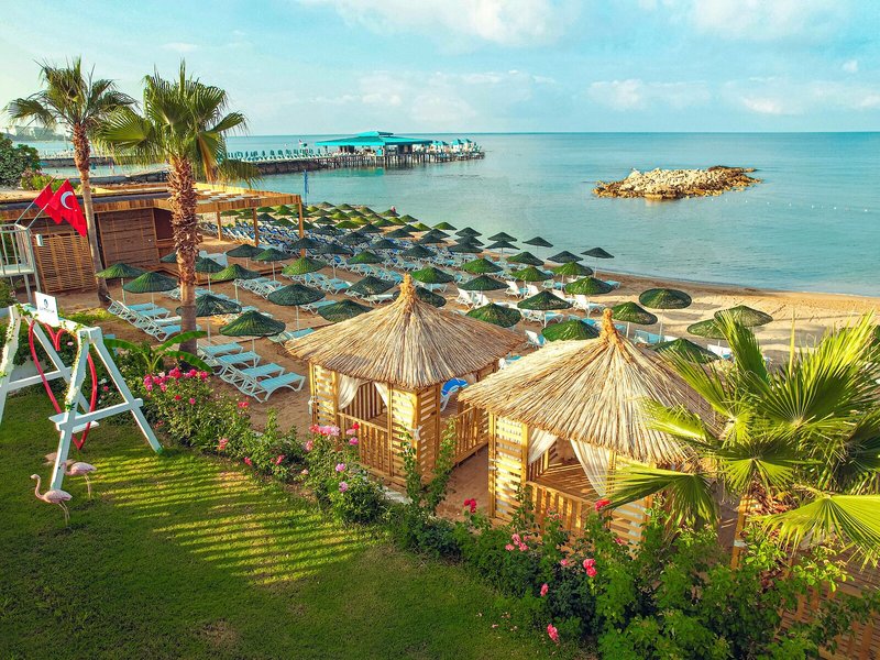 Lage & Umgebung Das Hotel, ideal für Strandurlauber und Familien, liegt im Zentrum Avsallar-Incekums, direkt am Meer. Bis zum nächsten Flughafen, Gazipasa (GZP), sind es ungefähr 67 km, Antalya (AYT) befindet sich in rund 95 km Entfernung.