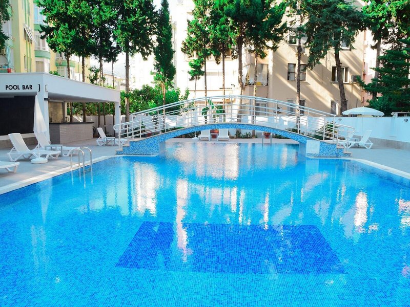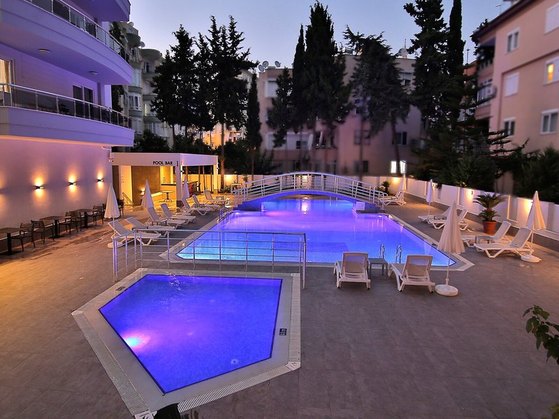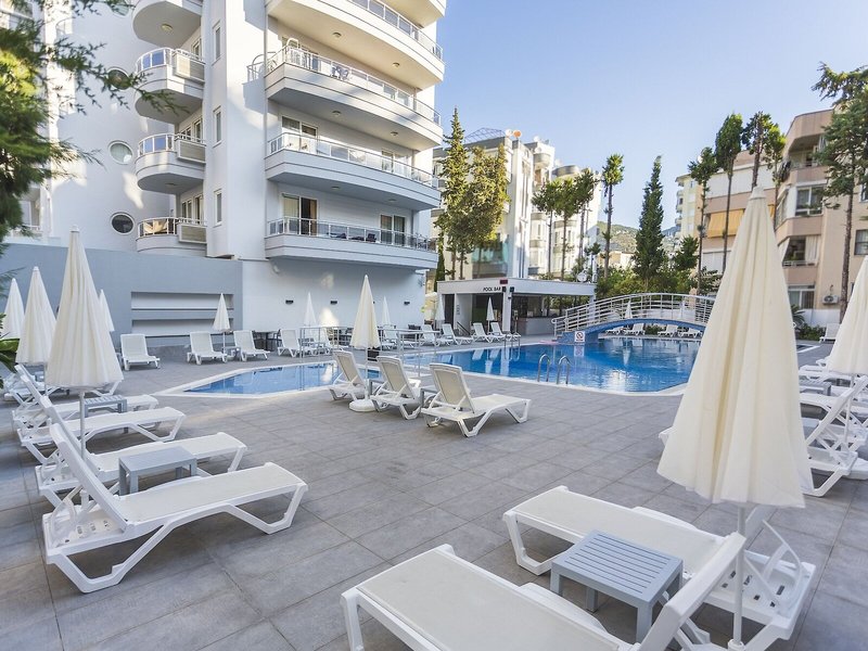 Elhelyezkedés és környék A szálloda egy nyüzsgő környéken található, kb. 500 m-re a strandtól, közvetlenül Alanyában. Innen a tengerparton nyaralók és a családok könnyedén felfedezhetik és jobban megismerhetik nyaralóhelyüket. A legközelebbi repülőtér, a Gazipasa (GZP) körülbelül 45 km-re, Antalya (AYT) pedig körülbelül 125 km-re található.
