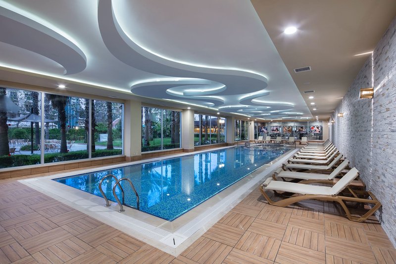 Felszereltség: A nyaraló összesen 419 szobát kínál két épületben és egy az utca túloldalán található melléképületben, amelyek mindegyike öt-hat emeletes. A számos szolgáltatás közé tartozik a modern előcsarnok recepcióval, hívogató ülősarokkal, lobby bár, liftek, teraszos büféétterem, számos à la carte étterem (foglalás szükséges), további bárok és egy műholdas TV-szoba. Különböző üzletek és fodrászat (mindegyik díj ellenében), fedett medence (szezonális) és jól felszerelt wellness-részleg is rendelkezésre áll. A komplexum egész területén Wi-Fi áll rendelkezésre. A jól karbantartott szabadtéri komplexumban két édesvizű úszómedence (a relaxációs medence március 28-tól fűtött, időjárás függvényében), külön gyermekmedence, két további medence csúszdákkal (óránként elérhető) felnőttek számára és két gyermekmedence csúszdákkal, napozóterasz és medence melletti snack bár található. Itt és a szálloda privát strandján, ahol strandbár található, nyugágyak, párnák és strandtörölközők is benne vannak az árban (naponta egyszeri csere).