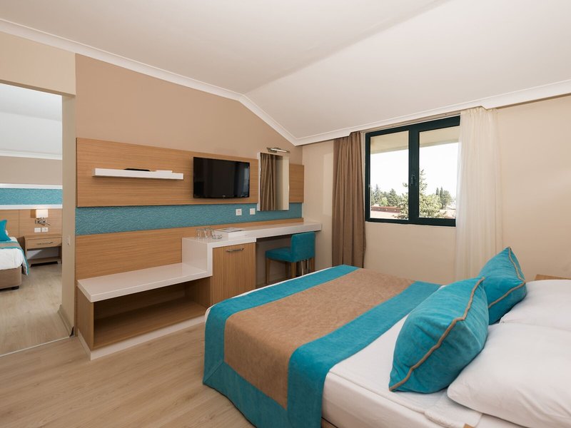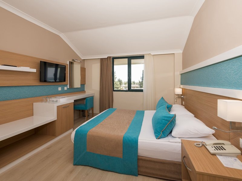 Szállás: A szobák légkondicionáltak. A vendégek csodálatosan pihenhetnek az erkélyen vagy a teraszon. A szobákban egy franciaágy és egy kanapéágy található. Külön hálószobák vannak. Pótágyak igényelhetők. Minibár és íróasztal is rendelkezésre áll, széf pedig felár ellenében bérelhető. A mini hűtőszekrény is az alapfelszereltség része. Ezen kívül telefon, síkképernyős TV műholdas vétellel és WiFi (felár ellenében) is rendelkezésre áll. A fürdőszoba zuhanyzóval és hajszárítóval felszerelt. Kerekesszékkel megközelíthető szoba foglalható. 30 családi szoba áll rendelkezésre gyermekes szülők számára.