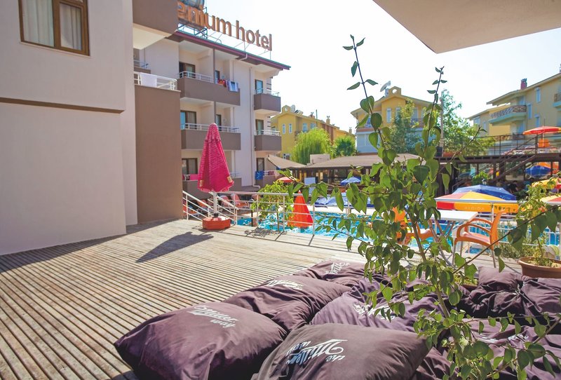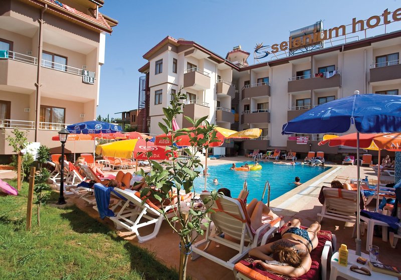 Felszereltség: Ez a családi kézben lévő üdülőszálloda három háromszintes épületből áll, és összesen 111 szobával rendelkezik. Vonzó előcsarnokot kínál recepcióval és ülőhelyekkel, valamint internetsarkot (felár ellenében), főéttermet terasszal, műholdas TV-szobát, bárt, egy kis játékszobát és egy új, szezonálisan nyitva tartó fedett medencét. A szálloda egész területén Wi-Fi áll rendelkezésre. A jól karbantartott területen két kompakt édesvizű medence található külön gyermekmedencével, napozóterasz medence melletti snackbárral és játszótér. A medence körül ingyenesen biztosítottak napozóágyak, párnák és napernyők. Napozóágyak és napernyők két privát strandon is rendelkezésre állnak. Az egyik strand körülbelül 700 méterre található, és gyalogosan megközelíthető, míg a másik körülbelül 1,5 kilométerre található, és transzferbusszal közelíthető meg.