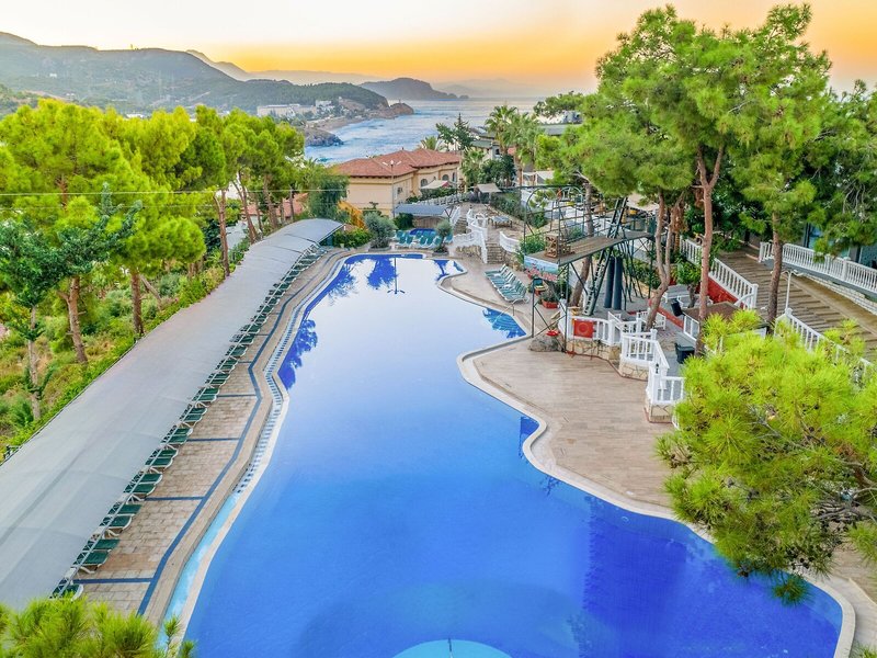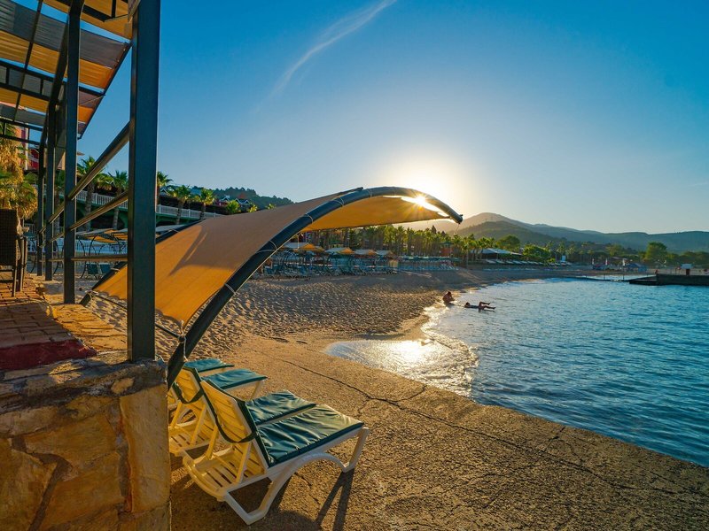 Sport & Fitness: Die Poolanlage mit 3 Außenpools und 2 Kinderplanschbecken eignet sich hervorragend für aktive Erholung und regelmäßiges Aquatraining. Zudem bringen erfrischende Getränke an der Pool-/Snackbar und eine Wasserrutsche alle Wasserratten in die beste Stimmung. Auch eine Terrasse mit Sonnenliegen und Sonnenschirmen ist vorhanden. Wem der Sinn nach Bewegung steht, werden Tennis und Basketball angeboten. Fitnessstudio, Tischtennis und Darts sind Teil des Sport- und Freizeitangebots des Resorts. Die Unterbringung verfügt über einen Wellnessbereich mit einer Sauna und einem Hammam sowie gegen zusätzliche Gebühr ein Spa, eine Beautyfarm und Massage-Anwendungen. Im Resort gibt es hervorragende Möglichkeiten zum Entspannen und zur Freizeitgestaltung, darunter einen Miniclub, eine Minidisco und eine Disco.