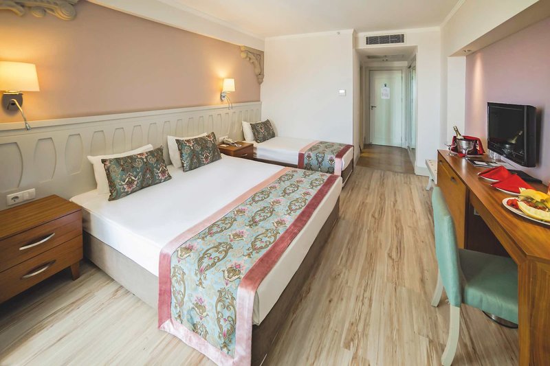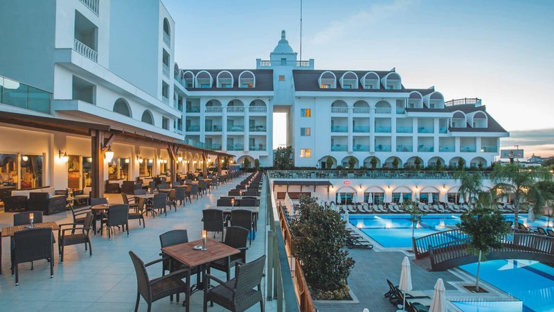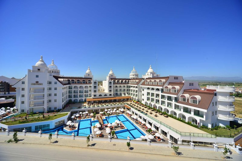 Felszereltség: Ez a modern tervezésű üdülőhely összesen 344 szobával rendelkezik. Tágas előcsarnok recepcióval, ingyenes Wi-Fi-vel, liftekkel, stílusos ülősarokkal és lobbybárral várja Önt. Az étkezési élményt egy teraszos főétterem (időjárás függvényében), számos különleges étterem (egy ingyenes látogatás legalább 7 éjszakás tartózkodás esetén, a szabad helyek függvényében és foglalás szükséges), cukrászda, további bárok és egy LCD műholdas TV-sarok szolgálja. Játékterem, különféle üzletek, éjszakai klub és fodrászat is rendelkezésre áll (mindegyik felár ellenében). Egy vonzó wellness-részleg is rendelkezésre áll. A gyönyörűen parkosított kültéri területen két édesvizű úszómedence, két külön gyermekmedence, egy másik medence három csúszdával (szezonális/meghatározott időpontokban nyitva), medence melletti snack bár és napozóteraszok találhatók. A beépített párnákkal ellátott napozóágyak, napernyők, ponyvatetők és strandtörölközők ingyenesen állnak rendelkezésre mind itt, mind a szálloda Crown Beach Clubjában, ahol a strandbár is található (szezonális).
