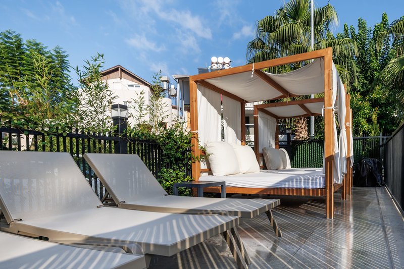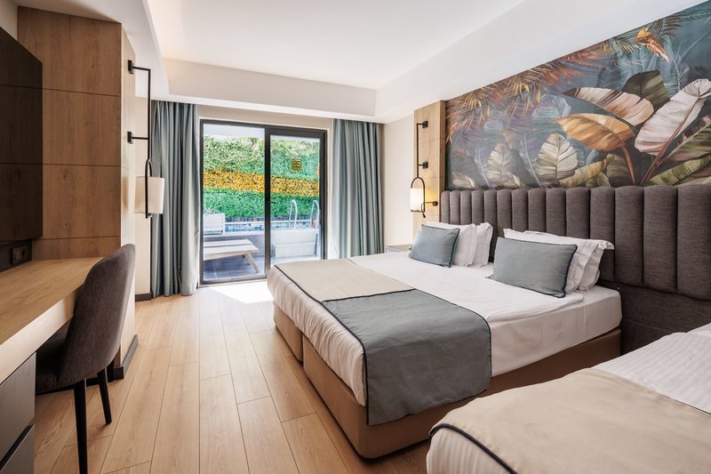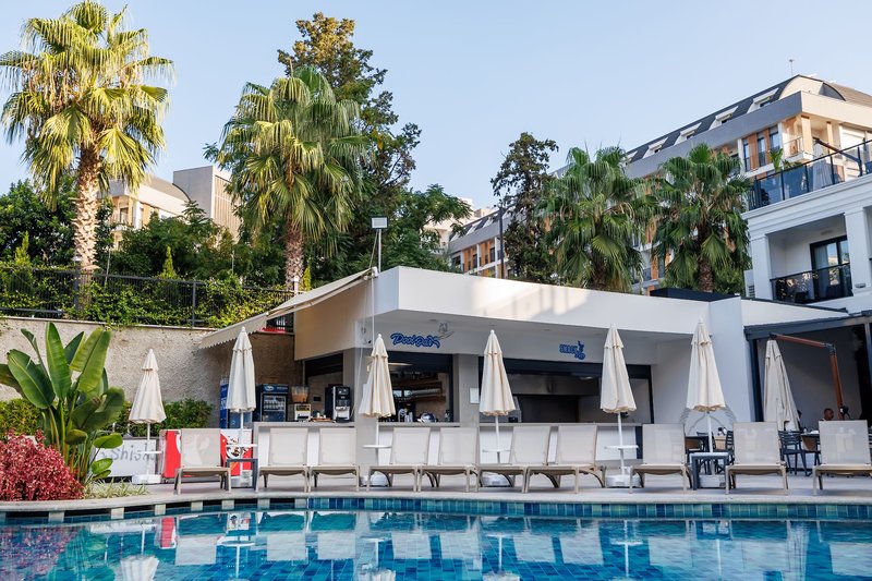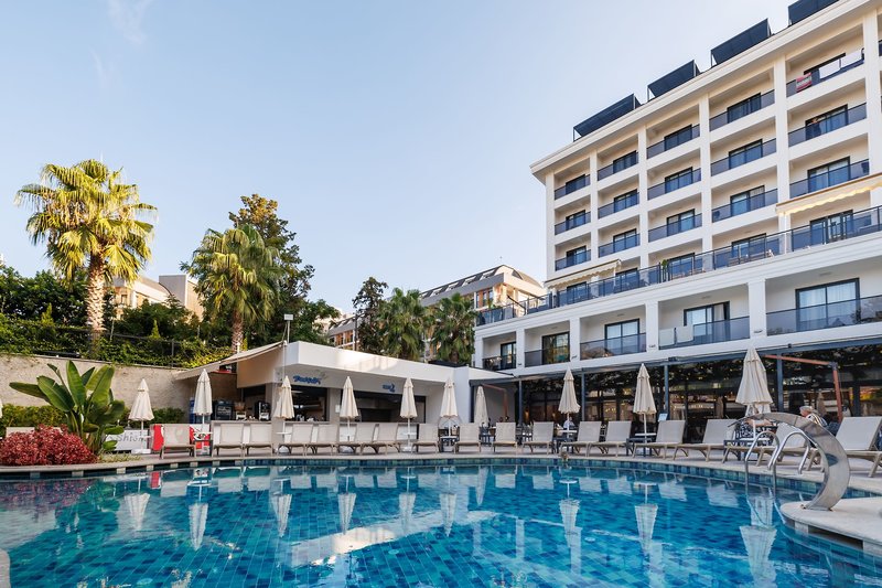 Felszereltség: Ez a modern, kizárólag felnőtteknek (16 éves kortól) fenntartott szálloda összesen 96 szobával rendelkezik nyolc emeleten (lift áll rendelkezésre). A különféle szolgáltatások közé tartozik egy lenyűgöző előcsarnok recepcióval és kényelmes ülőhelyekkel, egy étterem és számos bár. Egy jól felszerelt gyógyfürdő is rendelkezésre áll. Fodrászat és különféle üzletek is rendelkezésre állnak (felár ellenében). A Wi-Fi benne van az árban. A vonzóan parkosított területen medence, napozóteraszok és medence melletti bár található snackbárral. A napozóágyak, napernyők és strandtörölközők ingyenesen állnak rendelkezésre vendégeink számára itt és a strandon (a gyógyfürdőben elérhető). A strandon az ételek és italok felár ellenében fogyaszthatók.
