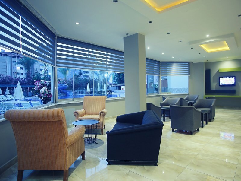 Lage & Umgebung Das Hotel liegt im Ortsteil Obagöl, etwa 3 km östlich des Zentrums von Alanya. Den flachen, teils kieseligen, teils felsigen Sandstrand erreichen Sie nach ungefähr 200 m.