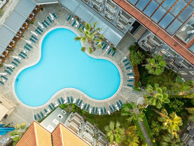Fekvése és környéke Az apartmanhotel körülbelül 2 km-re található Side ősi városától és a festői strandtól. A hangulatos utcákkal rendelkező óvárosban számos étterem és üzlet található. Az ősi Apollón-templom komplexum, egy lenyűgöző történelmi ékszer, mindössze 4 km-re található, és visszautazásra invitálja az ókorba.