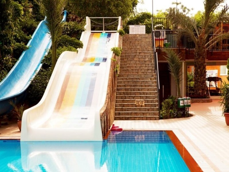 Sport & Fitness: Während die Erwachsenen im Außenpool ein paar Runden schwimmen, kommen die Kinder im Planschbecken auf ihre Kosten. Pure Tiefenentspannung im Whirlpool, Vergnügen auf der Wasserrutsche und erfrischende Getränke an der Poolbar – die Gäste werden erleben, wie abwechslungsreich der Wasserspaß sein kann. Auf der Sonnenterrasse sind Liegestühle und Schirme vorhanden. Die Unterbringung bietet ein umfangreiches Outdoor-Sportprogramm mit Radfahren/Mountainbiking, Tennis, Volleyball und Minigolf. Den Gästen steht im Hotel mit einem Fitnessstudio, Tischtennis, Billard und Darts ein breites Spektrum an Indoor-Sportarten zur Auswahl. Im Haus werden verschiedene Wellnessangebote wie Spa, Sauna, Dampfbad, Hammam, Schönheitssalon, Massage-Anwendungen und Solarium offeriert. Ein Animationsprogramm und ein Miniclub sind Möglichkeiten der Freizeitgestaltung.