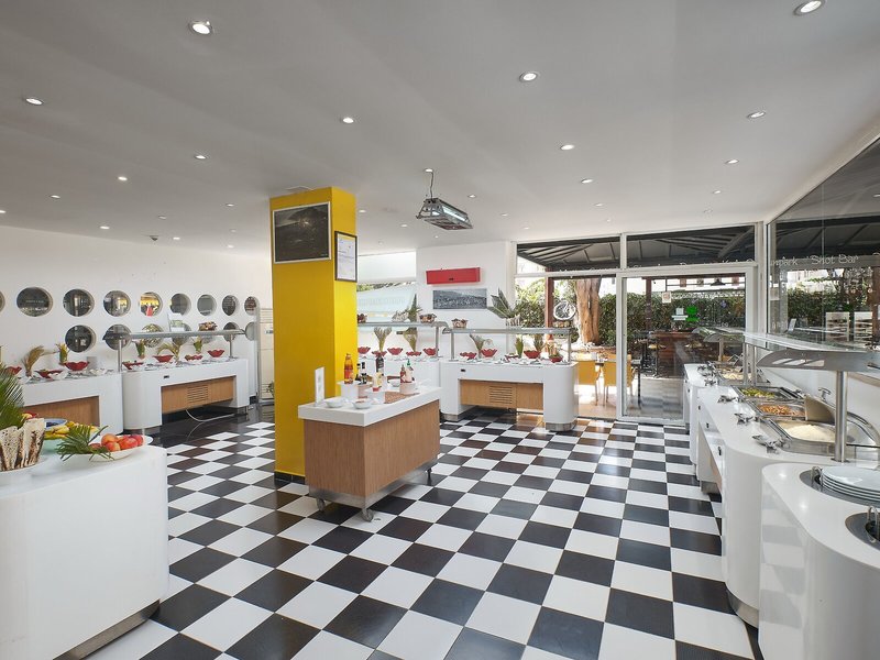 Essen & Trinken: Der gastronomische Bereich umfasst ein Restaurant und eine Bar. Die Unterbringung bietet als buchbare Verpflegungsleistungen Halbpension und All-Inclusive. Ein leckeres Frühstück gibt Energie für den Tag, zum Mittag- und Abendessen bedienen sich die Gäste am reichhaltigen Buffet. Glutenfreie Mahlzeiten, vegetarische Gerichte und Kindermenüs werden auf Wunsch zubereitet. Darüber hinaus stellt das Hotel Snacks bereit. Eine besondere Attraktion ist das Showcooking. Das Haus führt ein Sortiment alkoholischer und alkoholfreier Getränke.