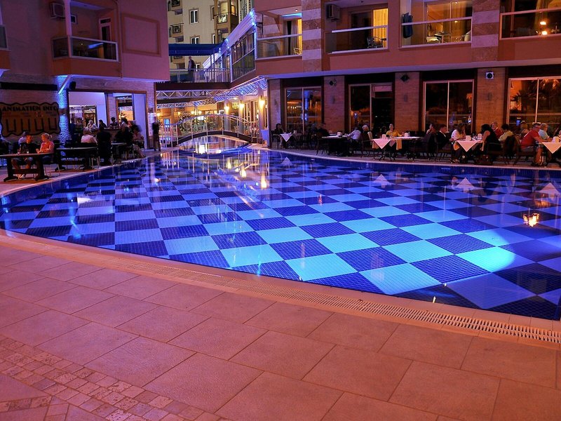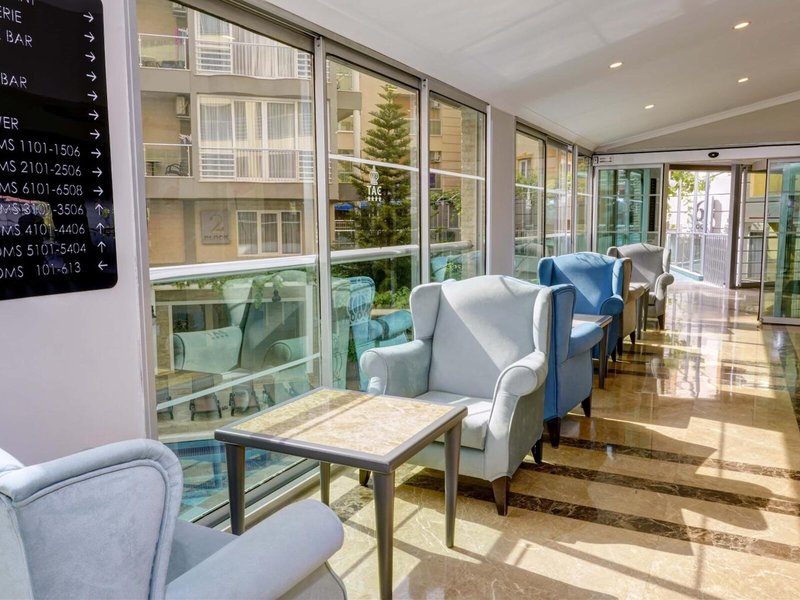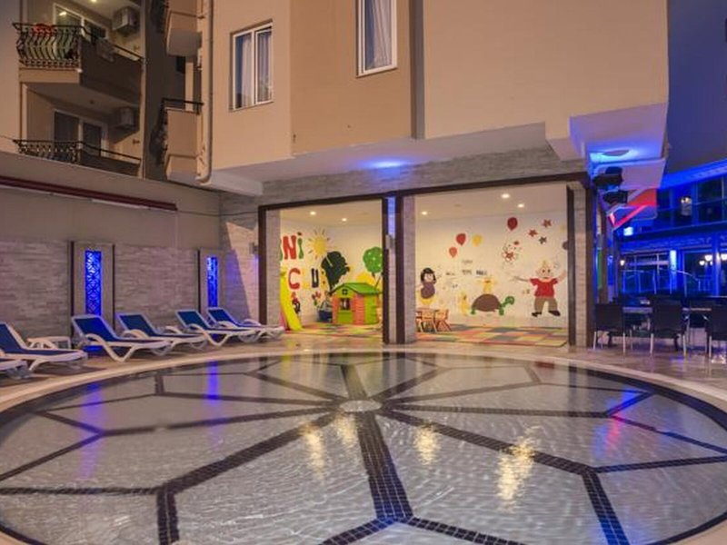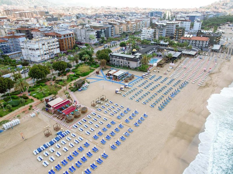 Elhelyezkedés és környék Az apartmanhotel ideális helyen található Alanya nyugati oldalán, mindössze 50 m-re a Kleopátra strandtól és könnyű hozzáférést biztosít a Damlataş-barlangokhoz (1 km). A csodálatos dombtetőn elhelyezkedő, a szállodából jól látható alanyai vár, valamint a városközpont számos szolgáltatásával a közelben található. A vendégek 20 méteren belül éttermeket, bárokat és üzleteket találhatnak, Alanya legközelebbi éjszakai szórakozóhelyei 1 km-re, Alanya turisztikai központja és a Vörös torony pedig 1,5 km-re találhatók. Antalya vára 2,5 km-re, Antalya repülőtere pedig 120 km-re található.