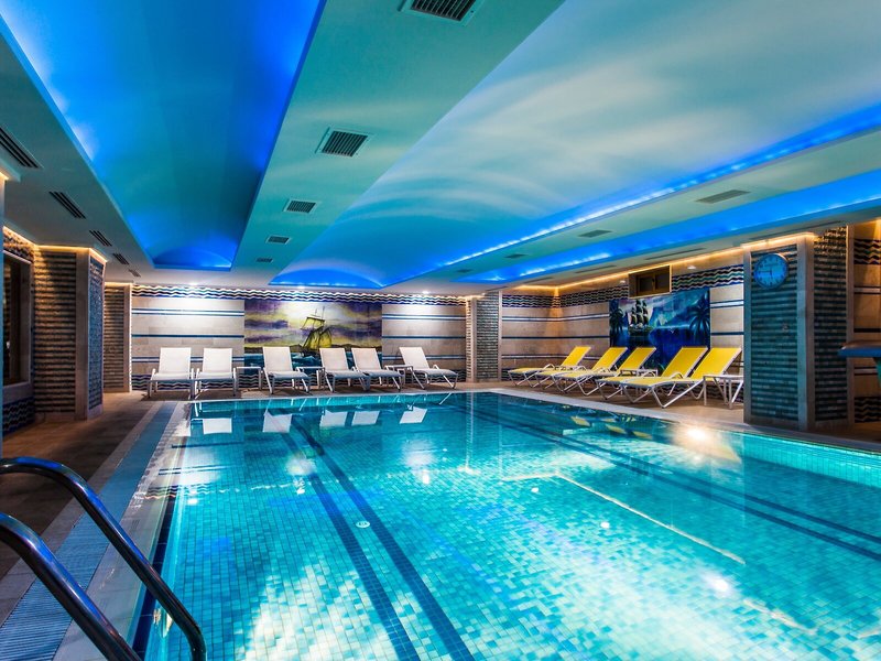 Sport és fitnesz: A beltéri és szabadtéri medencékkel rendelkező medence tökéletes hely a kikapcsolódásra egy aktív nyaralás után. A gyermekek számára 2 pancsoló medence található. A napozóteraszon kényelmes nyugágyak és árnyékos napernyők állnak rendelkezésre. A medencebárban frissítő italok fogyaszthatók. Az aktív kikapcsolódást kedvelők számára boccia és strandröplabda áll rendelkezésre. A szálláshely számos beltéri tevékenységet is kínál a sportok szerelmeseinek, beleértve az edzőtermet, asztaliteniszezést, biliárdot és dartsot. A szálloda számos wellness-szolgáltatást kínál, beleértve a szaunát, valamint felár ellenében gyógyfürdőt, törökfürdőt és szépségszalont. A legjobb szabadidős szórakozást miniklub, élőzene és diszkó biztosítja.