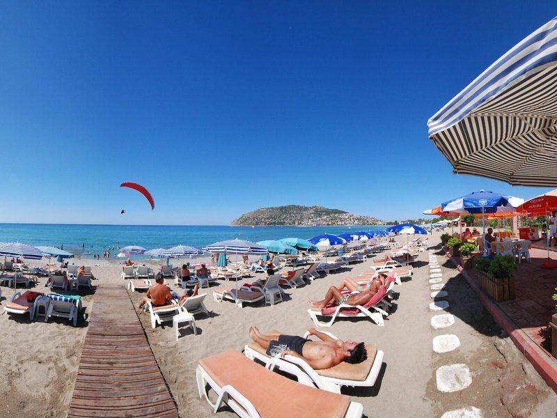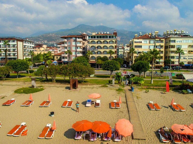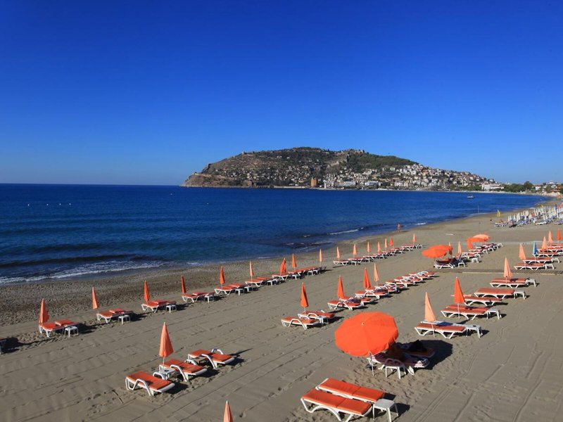 Lage & Umgebung Das Hotel ist nur 50 m vom Keybarat Strand und 800 m vom Stadtzentrum Alanyas entfernt, in dem es zahlreiche Einkaufs- und Unterhaltungsmöglichkeiten gibt. Die Entfernung zum Flughafen Antalya beträgt ca. 130 km.