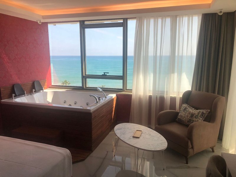 So wohnen Sie: Ein Balkon mit seitlichem Meerblick in den meisten Unterkünften lädt zum Verweilen ein. Für ein schönes Ambiente in den meisten Zimmern sorgt auch der Meerblick. In den mit Teppichböden ausgestatteten Zimmern steht ein Kingsize-Bett zur Verfügung. Wertsachen können in einem kostenpflichtig bereitgestellten Safe sicher aufbewahrt werden. Auch ein Kühlschrank und eine Tee-/Kaffeemaschine sind vorhanden. WiFi ist in der Grundausstattung der Zimmer enthalten. In den Badezimmern gibt es eine Dusche. Als Besonderheit genießen die Gäste Kosmetikartikel.