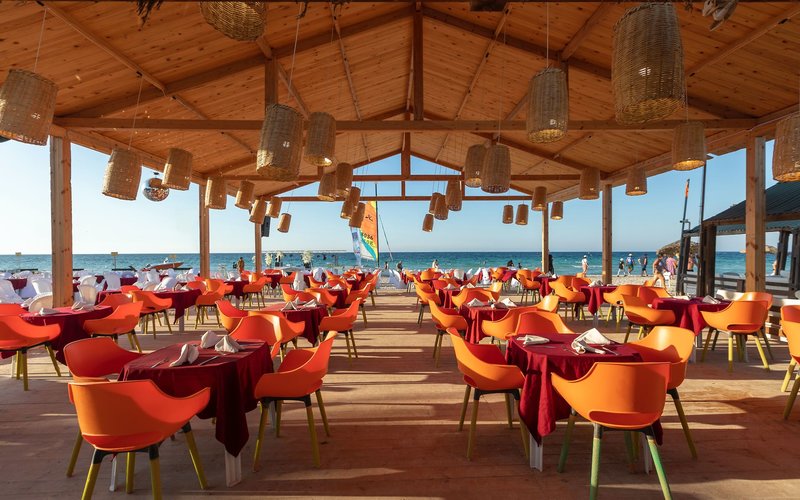 All Inclusive: Mahlzeiten in Buffetform. Frühstück, Mittag-und Abendessen, Frühaufsteher- und Spätaufsteherfrühstück, Snacks, Kaffeepause, lokale alkoholische und alkoholfreie Getränke an der jeweils geöffneten Bar von 9-24 Uhr, maurisches Cafe geöffnet von 16-24 Uhr. 1x pro Aufenthalt Abendessen im tunesischen Restaurant (Reservierung erforderlich). Beach Restaurant+Lunch zwischen 12:30-14:30 Uhr ab dem 1.06(je nach Verfügbarkeit)