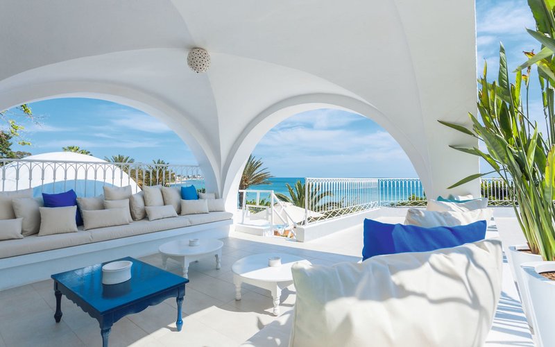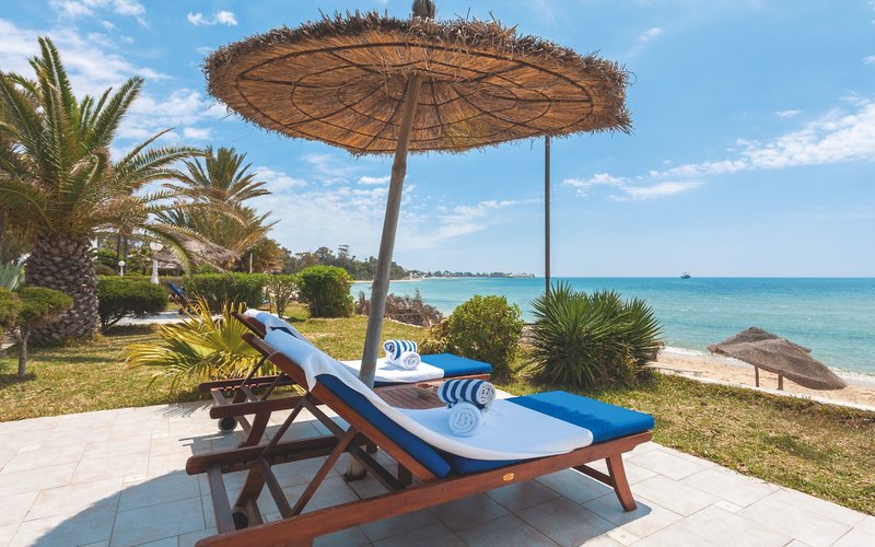 Ausstattung: Das charmante Hotel mit gemütlichem Ambiente und sehr gutem Service bietet die besten Voraussetzungen für erholsame Urlaubstage in ruhiger Umgebung. Die Reihenbungalows im maurischen Baustil bieten insgesamt 145 Zimmer und fügen sich harmonisch in die weitläufige Gartenanlage ein. Der gepflegte, parkähnliche Garten mit herrlichem, altem Baumbestand bietet genügend Raum für Individualität und lädt zum Verweilen ein. Hot Spot ist die edle, und in Tunesien einzigartige "Infinity Lounge" mit traumhaftem Blick über den Pool und das Meer. Zu den weiteren Annehmlichkeiten zählen die elegante Lobby mit Rezeption, Bar, gemütlichen Sitzgruppen sowie Internetecke (inklusive). Für das kulinarische Wohlbefinden sorgen ein modern gestaltetes Hauptrestaurant (Nichtraucher Restaurant), ein stilvoll eingerichtetes À-la-carte-Restaurant mit großer Terrasse am Pool, ein thailändisches À-la-carte-Restaurant sowie ein Barbecue-Restaurant am Strand mit großer Terrasse und herrlichem Ausblick mit Fisch- und Grillgerichten (nur in den Sommermonaten geöffnet). In der schönen, gepflegten Gartenanlage befinden sich 2 Süßwasserswimmingpools. Ein Pool davon mit separatem Kinderbecken und Sonnenterrasse (Liegen, Sonnenschirme und Badetücher sind am Pool inklusive, am Strand sind sie auf Anfrage. Ein beheiztes Hallenbad und das Spa-Center runden das Verwöhnprogramm ab.
